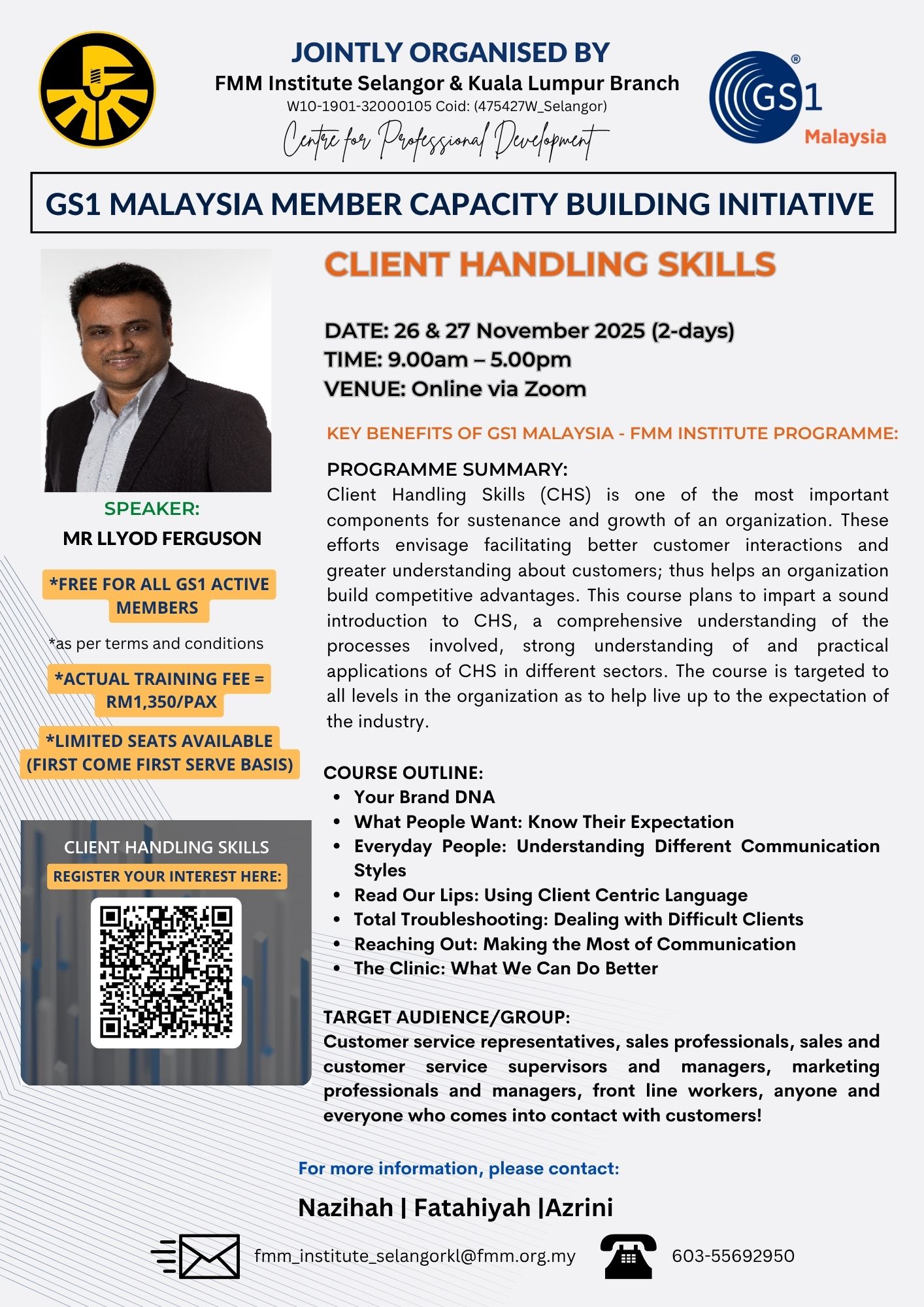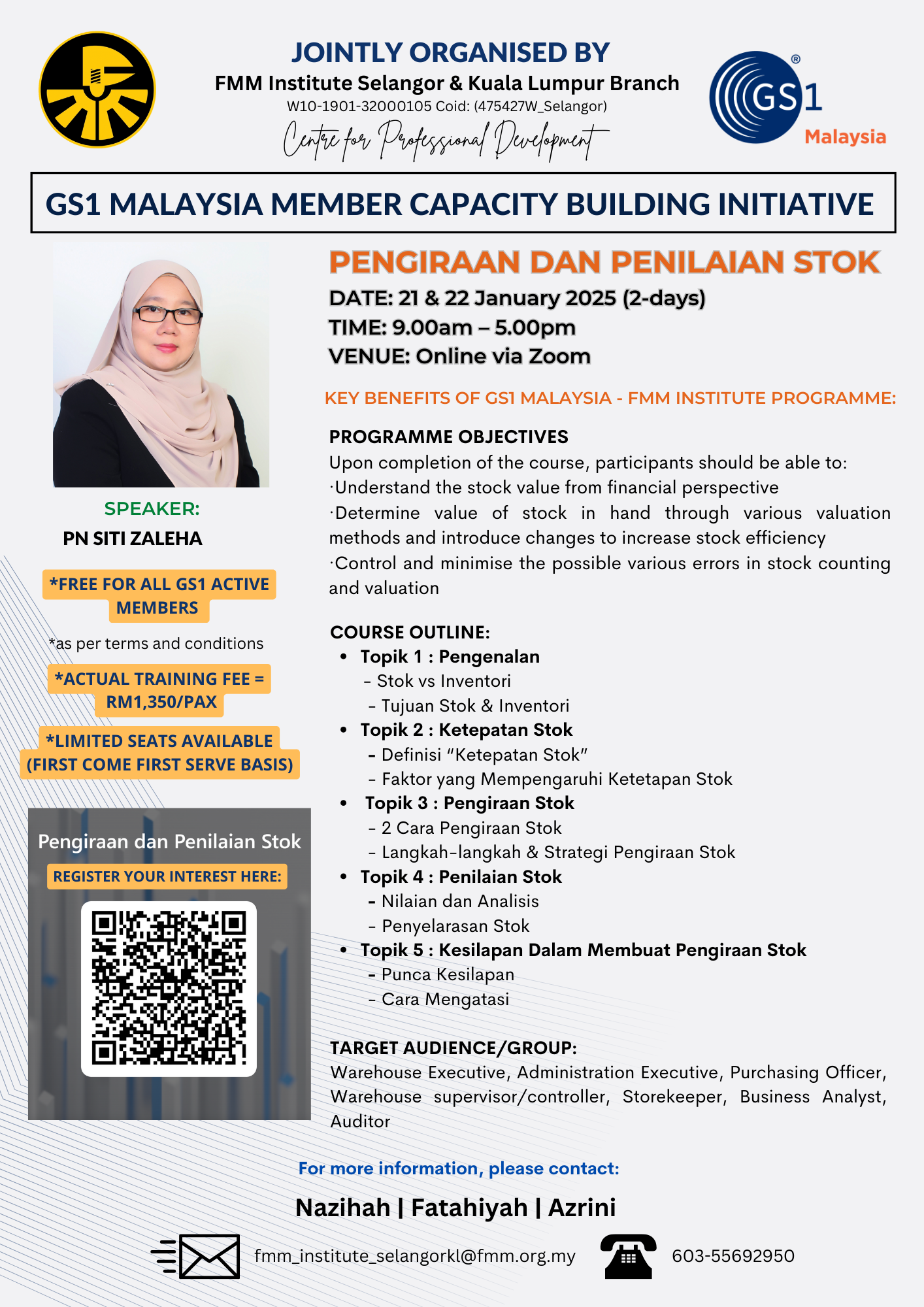 By maintaining your active membership with GS1 Malaysia, you unlock access to a wide range of capacity development opportunities, in collaboration with the FMM Institute (Commercial Value: RM1,350/pax/session).