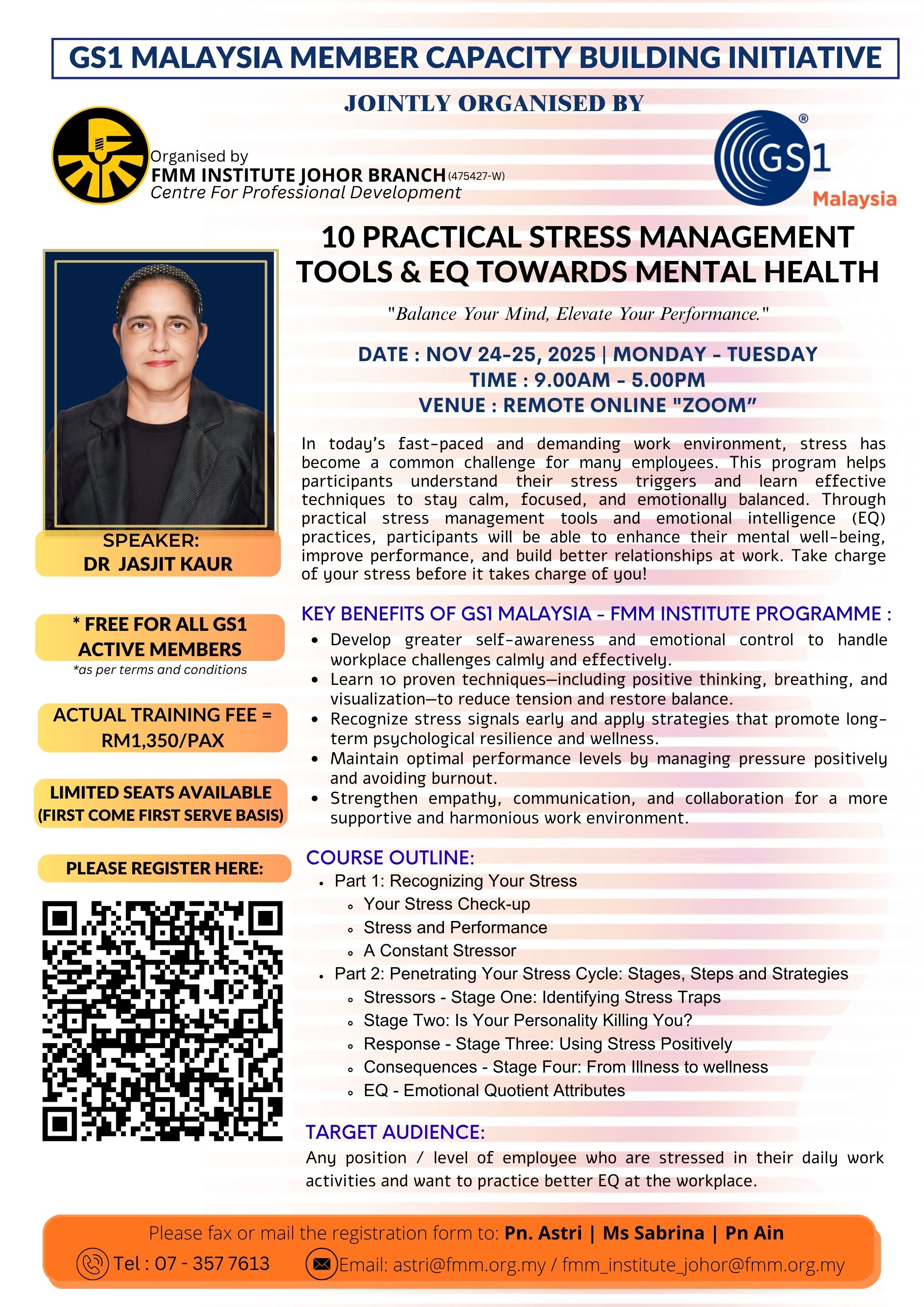 | 3 | 10 Practical Stress Management Tools & EQ towards Better Mental Health | Nov 24-25, 2025 | Johor | Download |