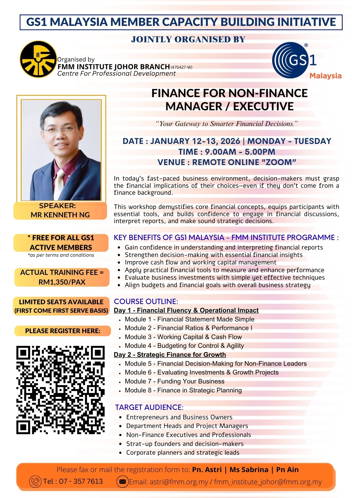 | 18 | Finance for Non-Finance Manager/ Executive | Jan 12-13, 2026 | Johor | Download |