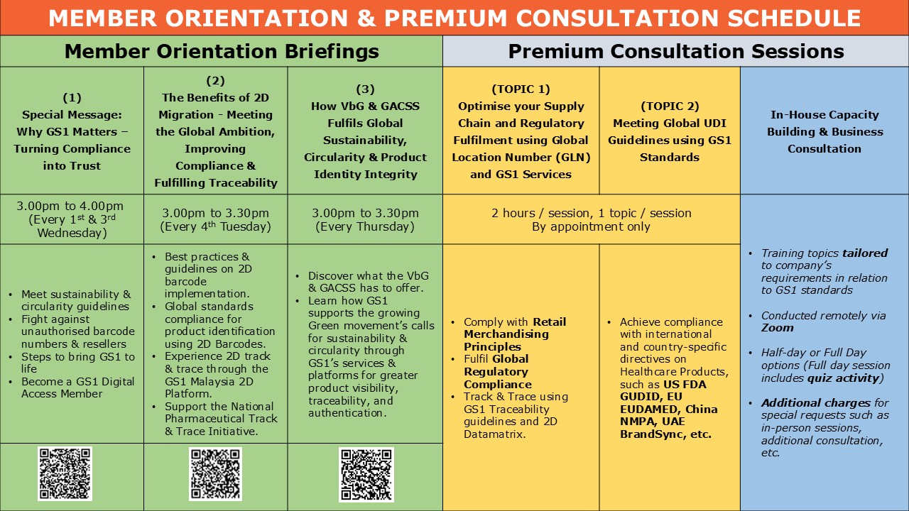 GS1 Malaysia recommends that you first attend our Why GS1 Matter briefing session that is held 1st & 3rd Wednesday of the Month at 3 pm to 4 pm for an overview of GS1 Standards, Regulatory Compliance, Consumer Experience & Trust, as well as to get answers to Frequently Asked Questions (FAQs) sent to GS1 Malaysia.